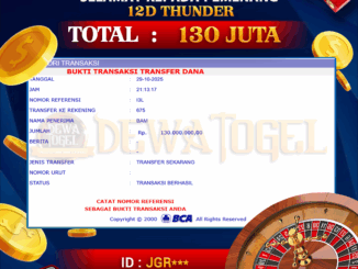 DEWATOGEL JACKPOT LIVE CASINO DI 12D THUNDER Rp 130.000.000,- LUNAS