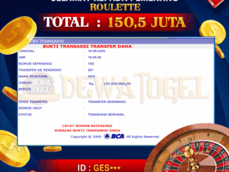 DEWATOGEL JACKPOT LIVE CASINO DI ROULETTE Rp 150.500.000,- LUNAS